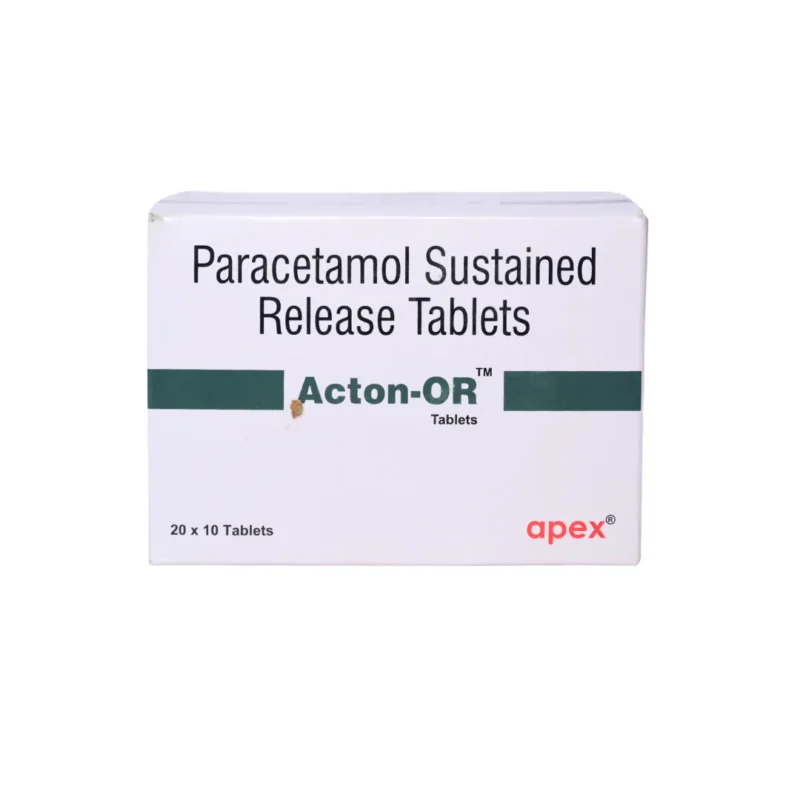 Acton-OR Tablet SR is a sustained-release analgesic and antipyretic used for effective relief from mild to moderate pain and fever. It works by inhibiting the production of prostaglandins—chemical messengers responsible for pain, inflammation, and elevated temperature. This long-acting formula offers extended relief from headaches, toothaches, menstrual cramps, muscle pain, joint pain, and cold or flu-related discomfort. Designed to be taken with food, it provides consistent symptom control with fewer daily doses.