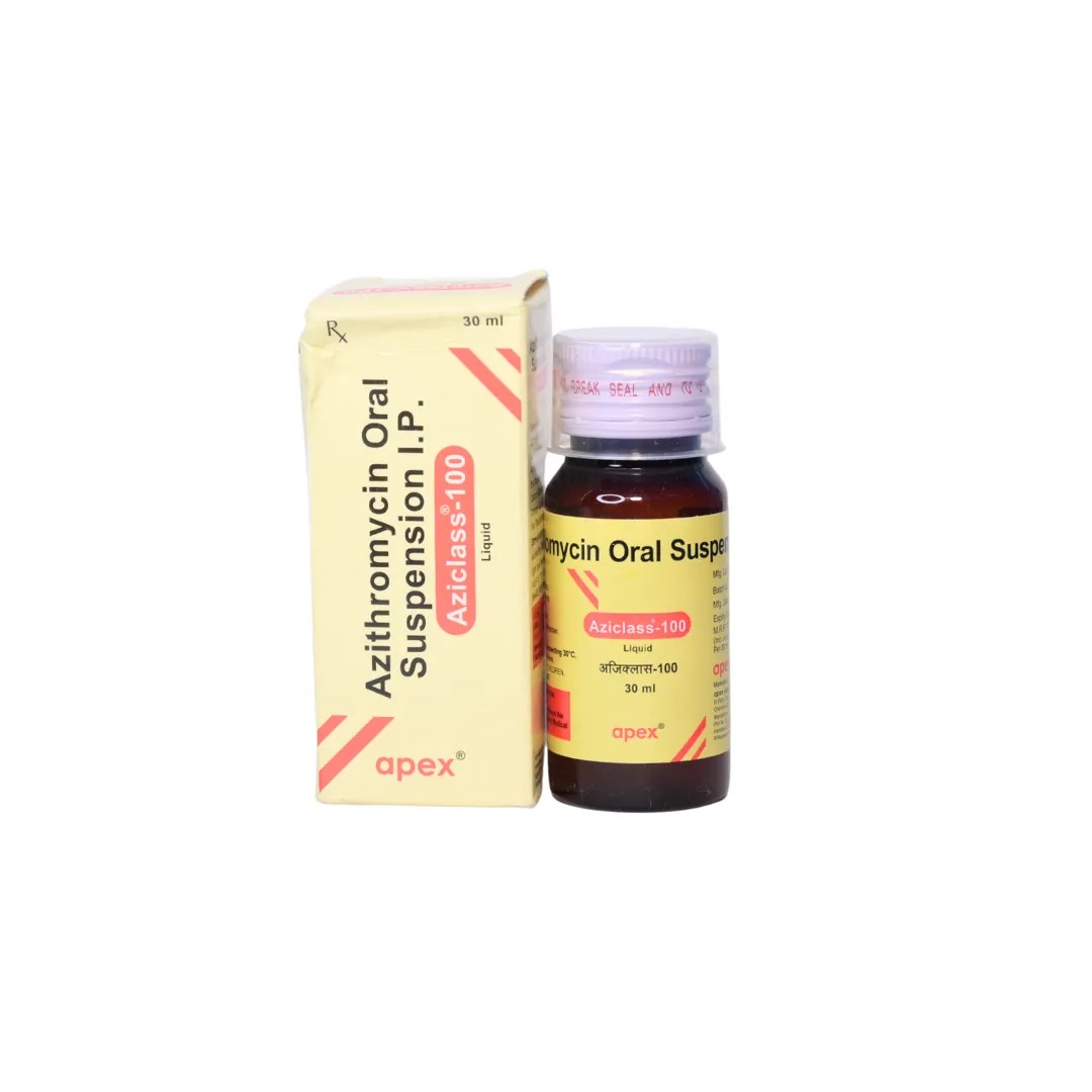 Aziclass 100mg Syrup is a pediatric antibiotic formulation containing Azithromycin, a macrolide antibiotic used to treat a variety of bacterial infections in children. It is effective for infections of the ear, nose, throat, lungs, skin, eyes, and is also prescribed for typhoid fever. The child-friendly flavored syrup ensures easier administration, while the once-daily dosing improves compliance. Completing the full prescribed course is essential to prevent bacterial resistance and ensure complete recovery.