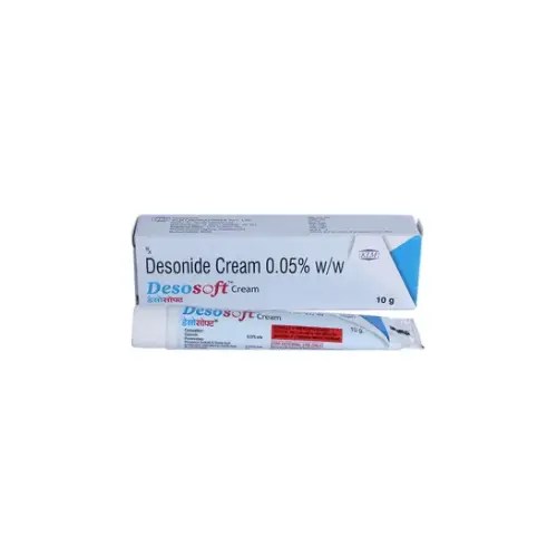 Desosoft Cream is a low-potency corticosteroid containing Desonide (0.05%), designed to treat skin inflammation, redness, and itching caused by conditions like eczema, dermatitis, and allergies. It works by reducing swelling, soothing irritation, and preventing flare-ups.