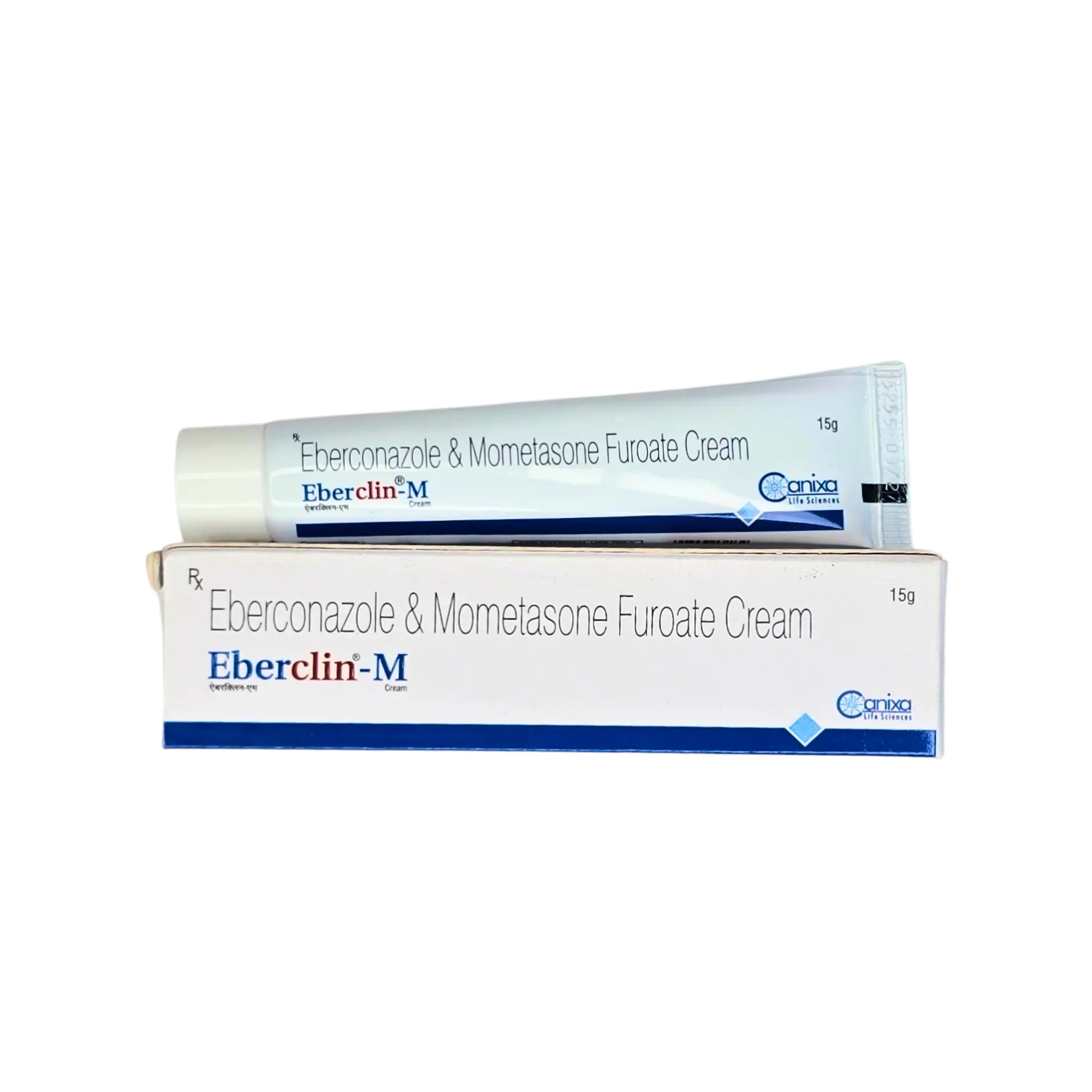 Eberclin-M Cream is a prescription topical dermatological medicine used for the treatment of fungal skin infections associated with redness, itching, and inflammation. It contains a combination of eberconazole, an antifungal agent, and mometasone, a corticosteroid that helps reduce swelling and irritation.
