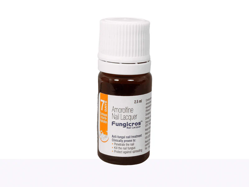 Fungicros Nail Lacquer is a clinically tested antifungal treatment formulated with Amorolfine 5%, known for its broad-spectrum antifungal action. It effectively treats and prevents fungal nail infections, promoting stronger, healthier nails.