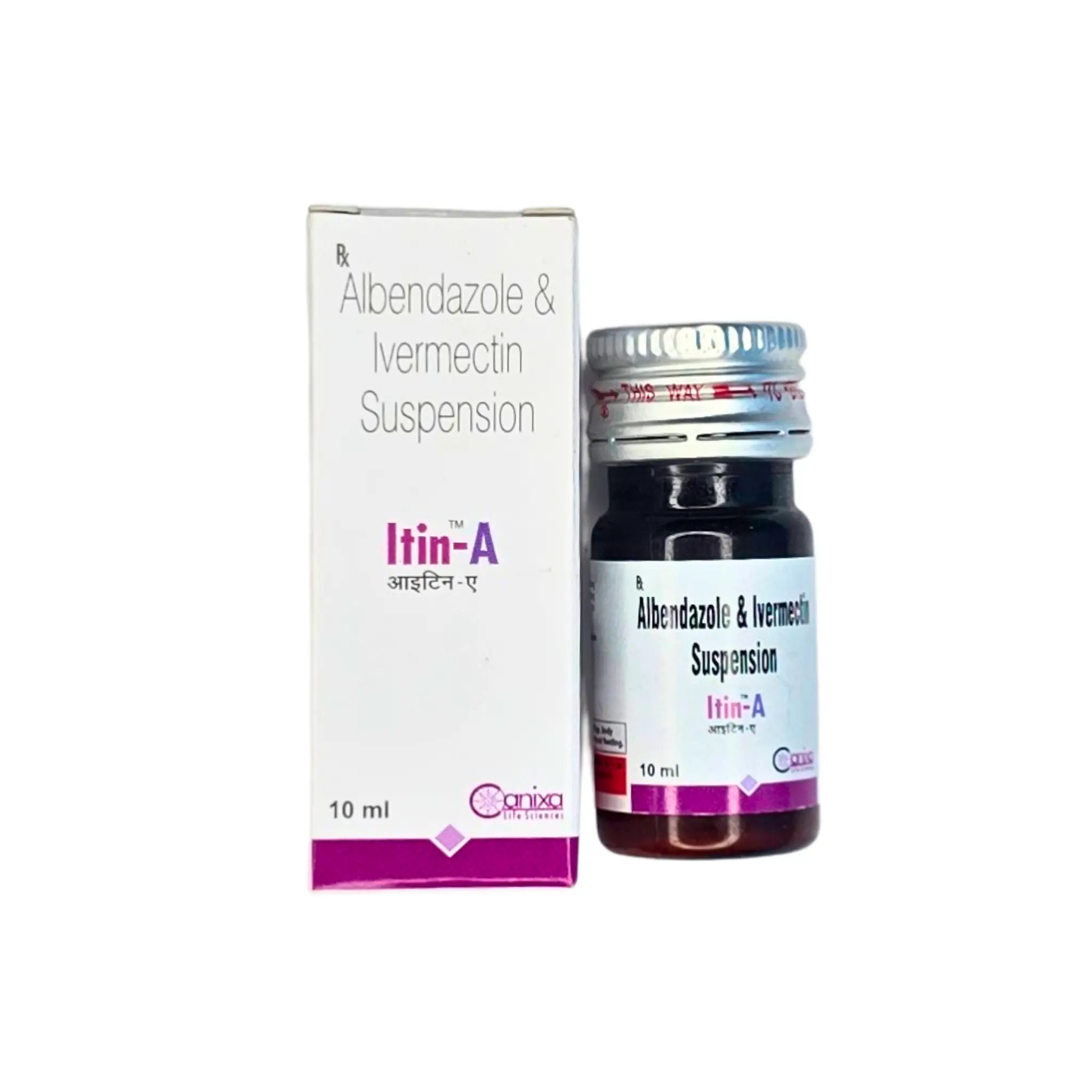 Itin-A Suspension is a prescription-only oral medication combining Ivermectin and Albendazole. It is used to treat a variety of intestinal worm and parasitic infections.