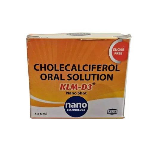 KLM-D3 Nano Shot Sugar Free Oral Solution 5ml is a powerful Vitamin D3 supplement designed to improve calcium absorption, support bone health, and manage Vitamin D deficiency. It is particularly effective in treating osteoporosis, osteomalacia, and other calcium deficiency conditions. With its sugar-free formulation, it’s ideal for individuals monitoring their sugar intake.