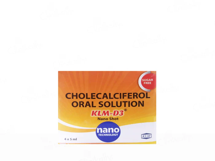 KLM-D3 Nano Shot Sugar Free Oral Solution 5ml is a powerful Vitamin D3 supplement designed to improve calcium absorption, support bone health, and manage Vitamin D deficiency. It is particularly effective in treating osteoporosis, osteomalacia, and other calcium deficiency conditions. With its sugar-free formulation, it’s ideal for individuals monitoring their sugar intake.