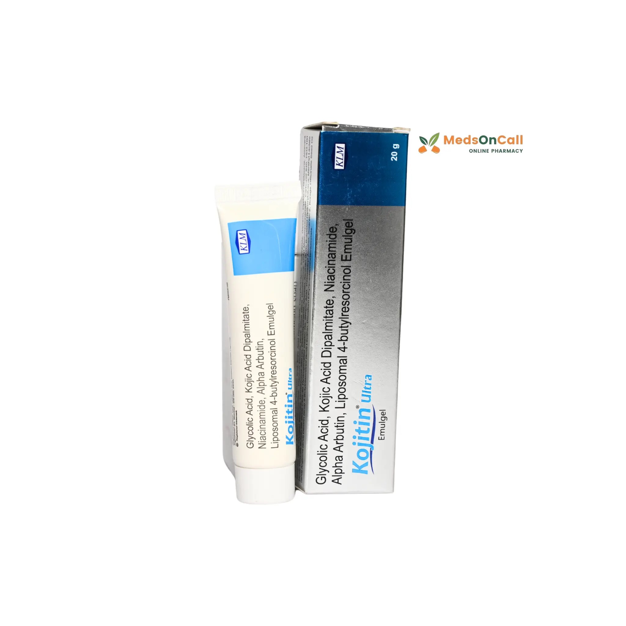 Kojitin Ultra Emulgel is a dermatologist-recommended skin-lightening formulation that targets hyperpigmentation, dark spots, acne scars, and uneven skin tone. Enriched with Kojic Acid, Alpha Arbutin, Niacinamide, and Glycolic Acid, this emulgel reduces melanin production while hydrating and protecting the skin from environmental damage.