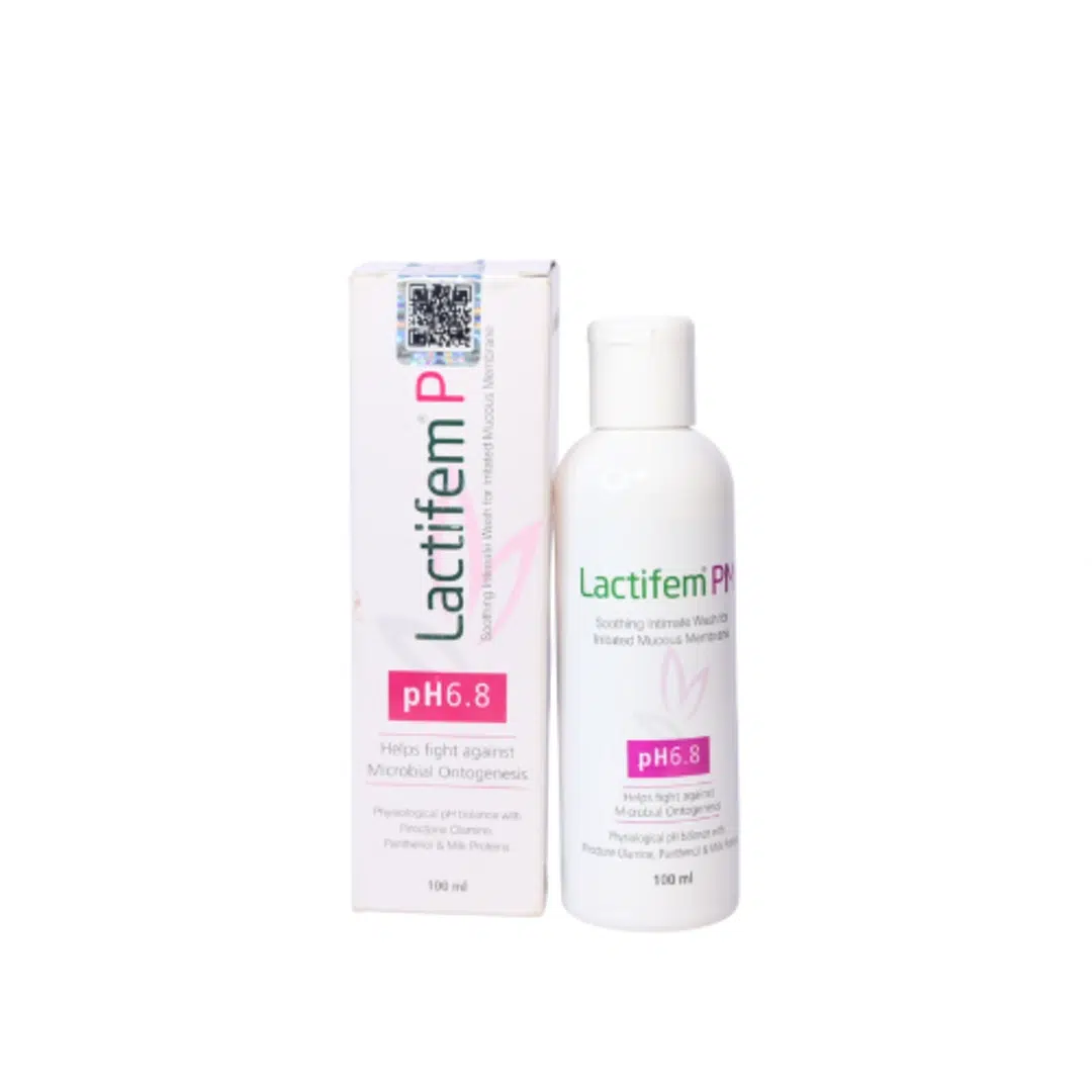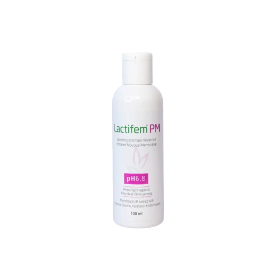 Lactifem PM Solution is a gentle, pH-balanced intimate wash specially formulated for postmenopausal women to maintain intimate hygiene and comfort. Enriched with Aloe Vera for soothing hydration, Hydrolysed Milk Proteins for nourishment, and Piroctone Olamine for antimicrobial protection, it helps prevent dryness, irritation, and discomfort. Its mild formulation supports the natural flora while keeping the intimate area fresh, clean, and moisturized.