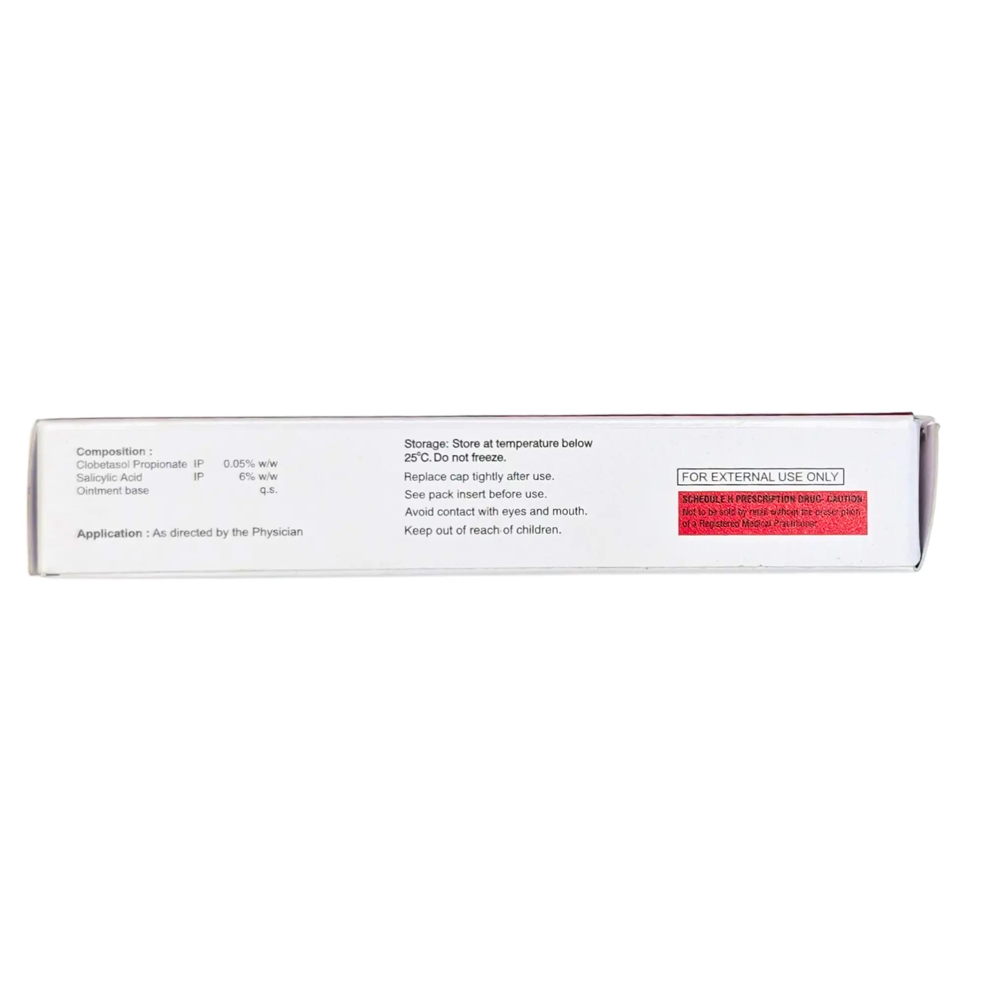 - Clobetasol Propionate (0.05%) – A potent steroid that reduces inflammation swelling and itching