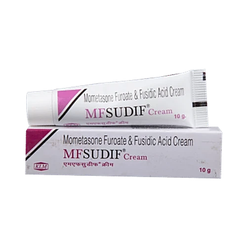 Mfsudif Cream is a dual-action topical treatment formulated with Mometasone Furoate (0.1%) a corticosteroid that reduces redness itching & inflammation and Fusidic Acid (2%) an antibiotic that fights bacterial skin infections It is widely prescribed for eczema dermatitis psoriasis and infected skin conditions This fast-absorbing lightweight formula ensures effective relief and helps promote skin healing.