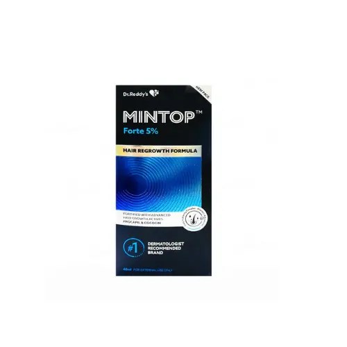 Mintop Forte 5% Topical Solution is a clinically tested hair regrowth treatment formulated with minoxidil. It is designed to address hereditary hair loss by revitalizing hair follicles and improving scalp circulation. The topical solution supports the regrowth of thicker stronger strands and is suitable for men and women experiencing early to moderate hair thinning. With consistent use it helps restore hair density and prevent further hair shedding. Its easy application makes it a practical addition to daily hair care routines.