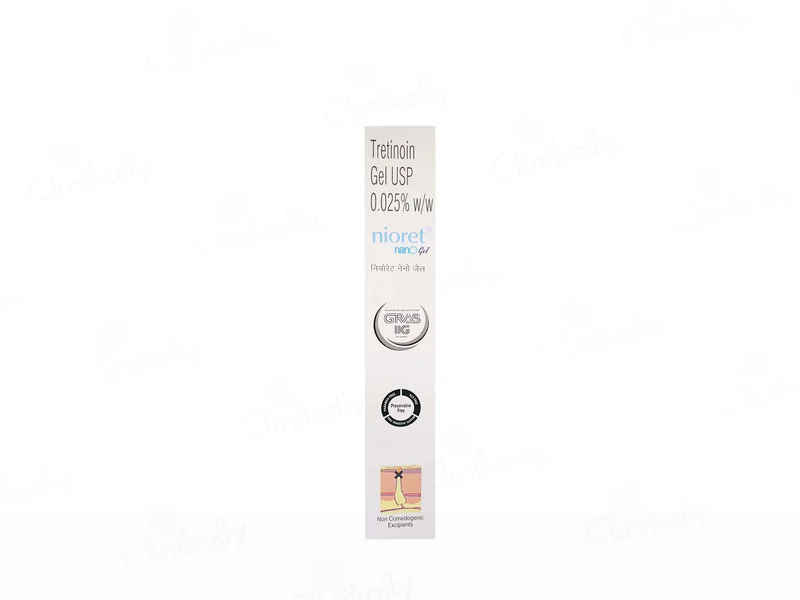 Nioret Nano Gel is a prescription based topical treatment containing tretinoin zero point zero two five percent. It is designed to accelerate skin cell turnover reduce acne and improve signs of early skin aging. The nano delivery system enhances absorption into the deeper layers of skin while minimizing surface irritation. Regular use under medical supervision helps in achieving clear smooth and rejuvenated skin. It is best used as part of a night skincare routine with daily sun protection.