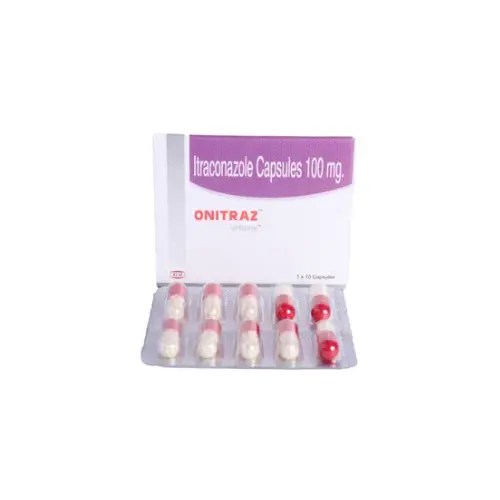 Onitraz Capsule is a prescription antifungal medication used to treat fungal infections of the skin nails & internal organs Its active antifungal ingredient works by disrupting the fungal cell membrane thereby eliminating the infection & preventing recurrence The oral capsule format ensures better absorption & long-lasting effectiveness making it a preferred choice for dermatologists & healthcare professionals.
