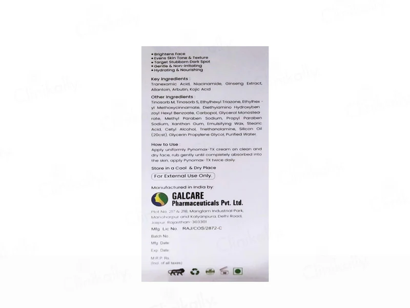 Pynomax-Tx Cream SPF 50 is a dermatologist-recommended skin brightening & depigmenting treatment that targets hyperpigmentation, dark spots, and melasma. Formulated with Tranexamic Acid, Niacinamide, and Arbutin, it effectively inhibits melanin production and promotes an even complexion.