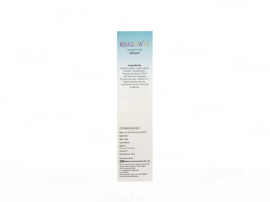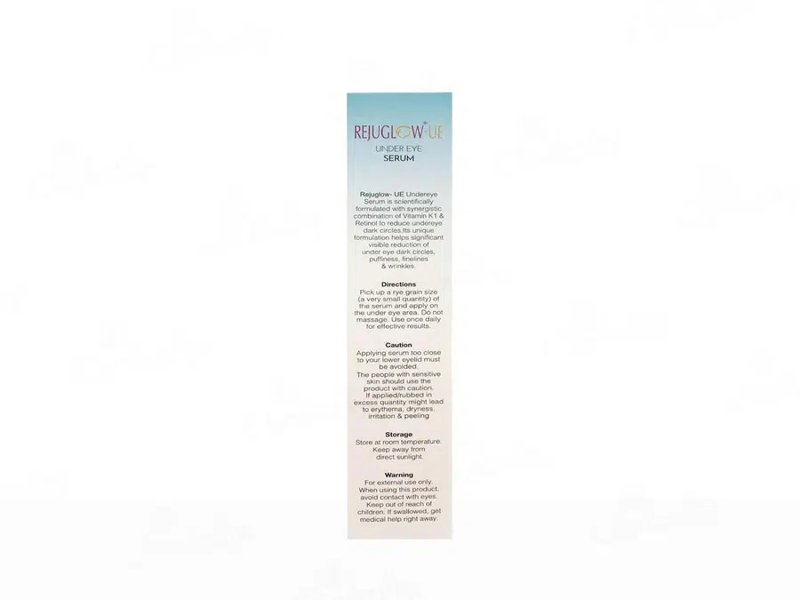 Rejuglow-UE Under Eye Serum is a scientifically formulated skincare solution designed to address common under-eye concerns. Enriched with potent ingredients like Retinol (Vitamin A) and Vitamin K1, this serum works synergistically to reduce the appearance of dark circles, puffiness, fine lines, and uneven skin tone. The inclusion of Shea Butter and Propylene Glycol ensures deep hydration, leaving the delicate under-eye area firm, smooth, and rejuvenated.