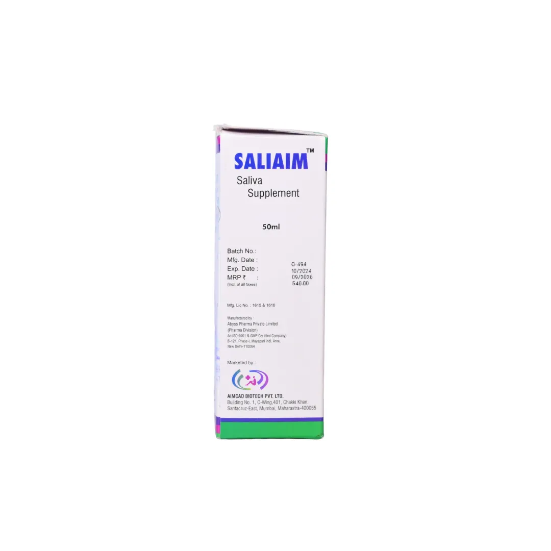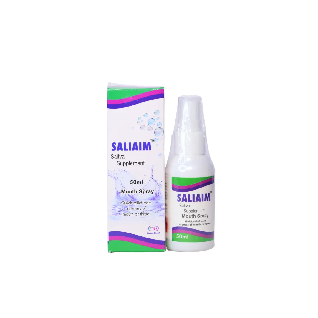Saliaim Mouth Spray is a moisturizing oral spray designed as an artificial saliva substitute to relieve dryness in the mouth (xerostomia). Enriched with sodium carboxymethylcellulose, sorbitol, and essential electrolytes, it hydrates the oral cavity, improves comfort during speaking and swallowing, and helps maintain oral tissue health.