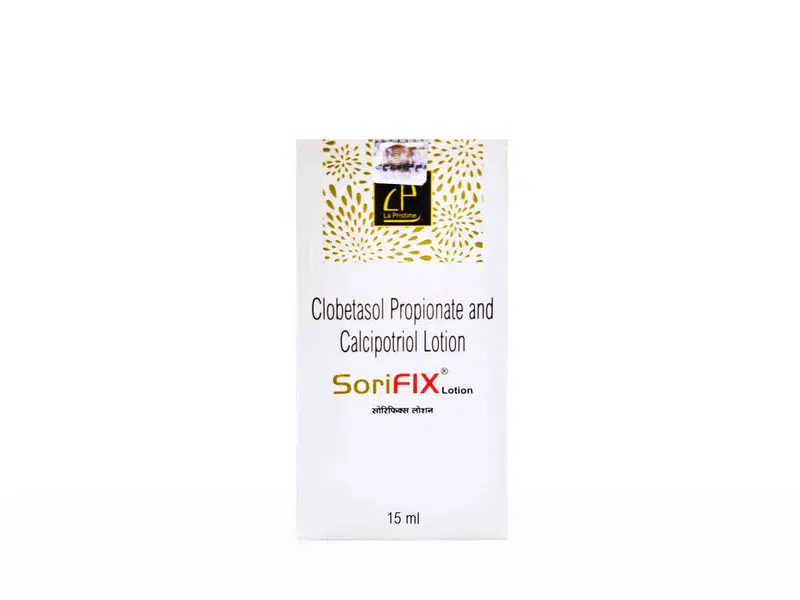 Sorifix Lotion is a specialized topical treatment designed to provide fast relief from psoriasis symptoms like scaling, redness, and itching. Dead skin cells are exfoliated by its unique salicylic acid-based formula while dry, flaky patches are moisturized. The lightweight, non-sticky texture is absorbed quickly without leaving residue, making it ideal for daily use. Smoother, healthier-looking skin is restored by Sorifix Lotion, which is dermatologist-recommended and clinically tested. This lotion is manufactured by Glenmark Pharmaceuticals and is a trusted solution for effectively managing psoriasis flare-ups.