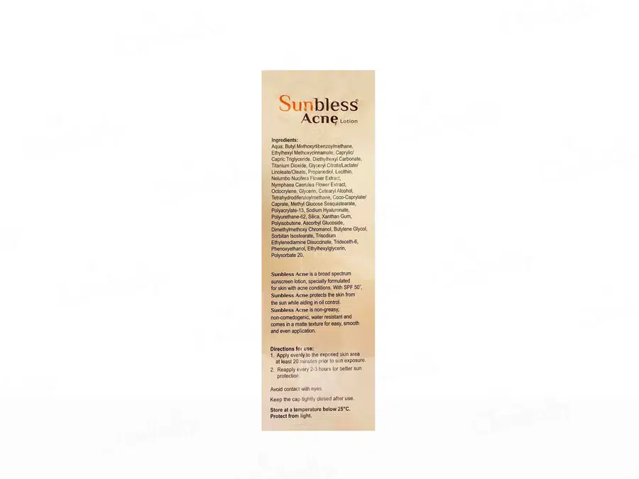 Sunbless Acne Lotion is a 2-in-1 skincare hero that is designed to tackle acne while being a shield for your skin from harmful sun rays. This oil-free, non-greasy formula is combined with SPF 50 PA+++ protection and acne-fighting actives to prevent breakouts without drying your skin. Perfect for oily and acne-prone skin types, broad-spectrum sun protection is provided while excess sebum is controlled and inflammation is reduced. No white residue is left by the fast-absorbing lotion, making it ideal for daily use under makeup. Dermatologist-approved and non-comedogenic, it is considered your perfect partner for clear, protected skin all day long.