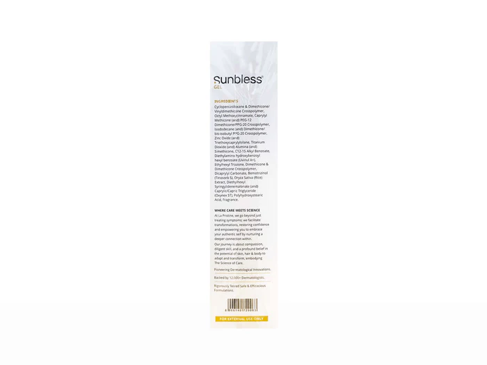 Sunbless Gel is redefined in sun protection by its invisible silicone shield that feels like second skin. Broad-spectrum defense against harsh Indian sun is provided by this high-performance SPF 50+ PA+++ sunscreen without clogging pores or leaving residue. Instantly, the ultra-light gel texture is absorbed, making it perfect under makeup or for bare-faced days. Unlike traditional sunscreens, its water-resistant formula remains effective during workouts or beach days while being gentle enough for daily use. Dermatologist-approved and non-comedogenic, the smart choice for preventing tanning, premature aging, and sun damage is made – all without the heavy, sticky feel.