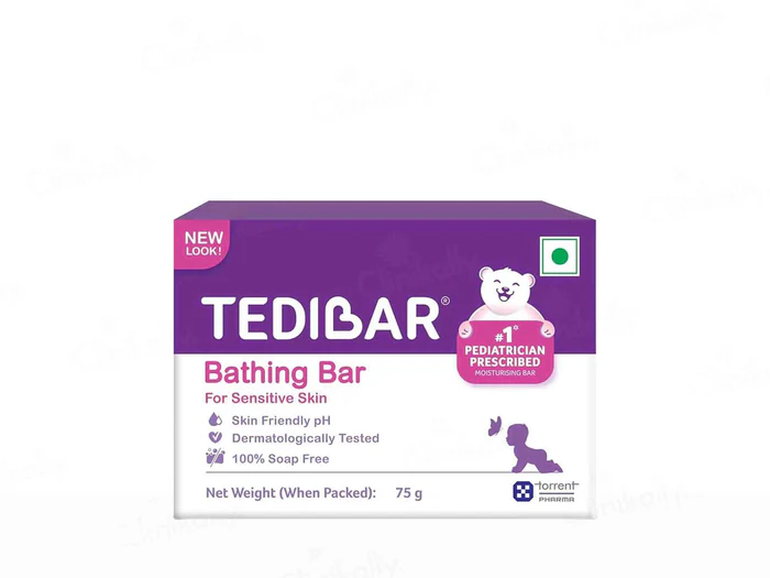 Tedibar Bathing Bar is a mild cleansing bar specially developed for baby skin. It is free from soap and alkali which makes it gentle for newborns and infants. With a pH of 5 point 5 it maintains the skin’s natural barrier and prevents dryness or irritation. Tedibar is ideal for daily use and helps keep the baby’s skin soft smooth and healthy.