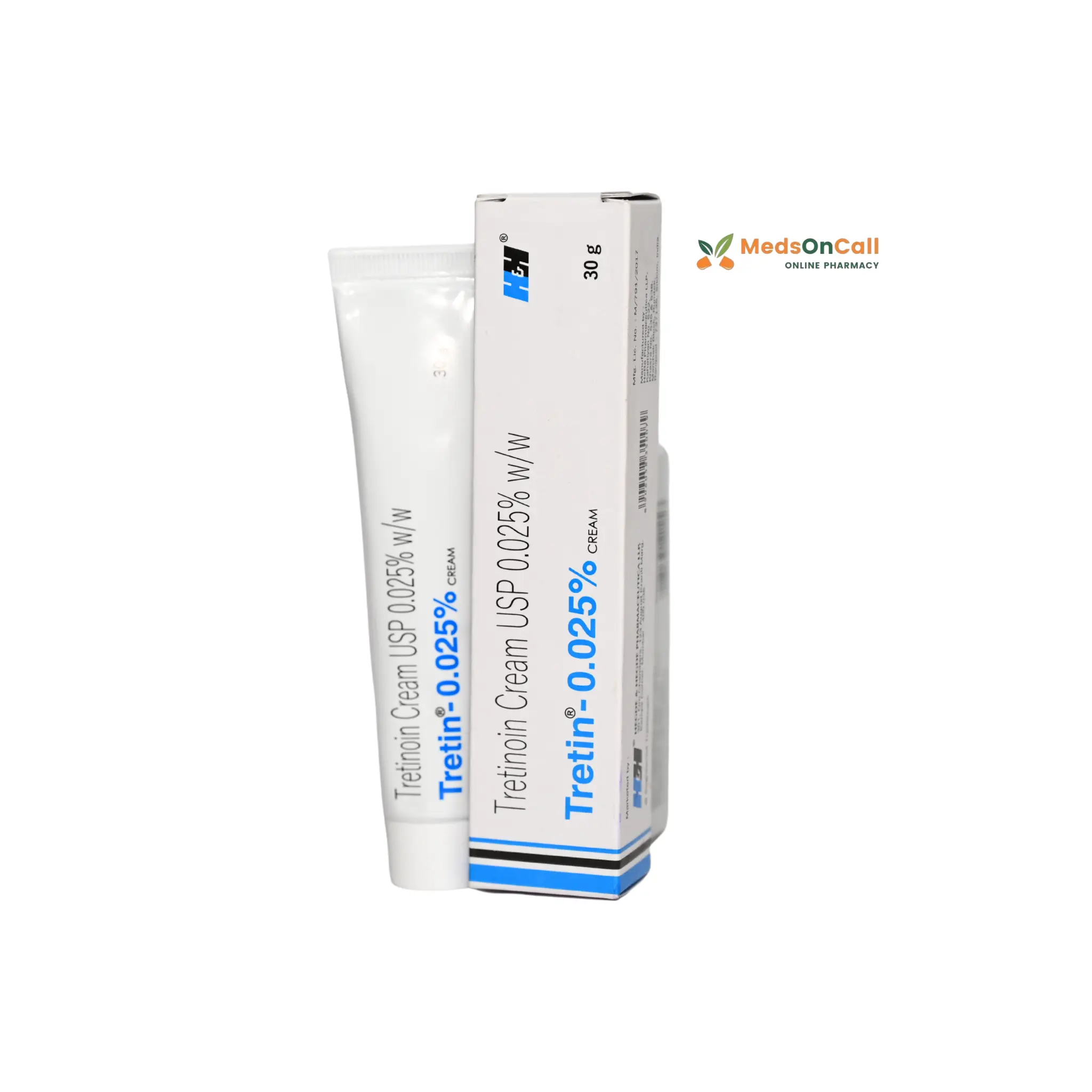 Tretin 0.025% Cream is a topical retinoid medication containing tretinoin, a derivative of vitamin A. It is primarily used to treat acne vulgaris by promoting cell turnover, preventing the formation of new acne lesions, and improving skin texture. Additionally, it is effective in reducing fine wrinkles, smoothing rough facial skin, and addressing hyperpigmentation. Regular use under medical supervision can lead to clearer, more youthful-looking skin.