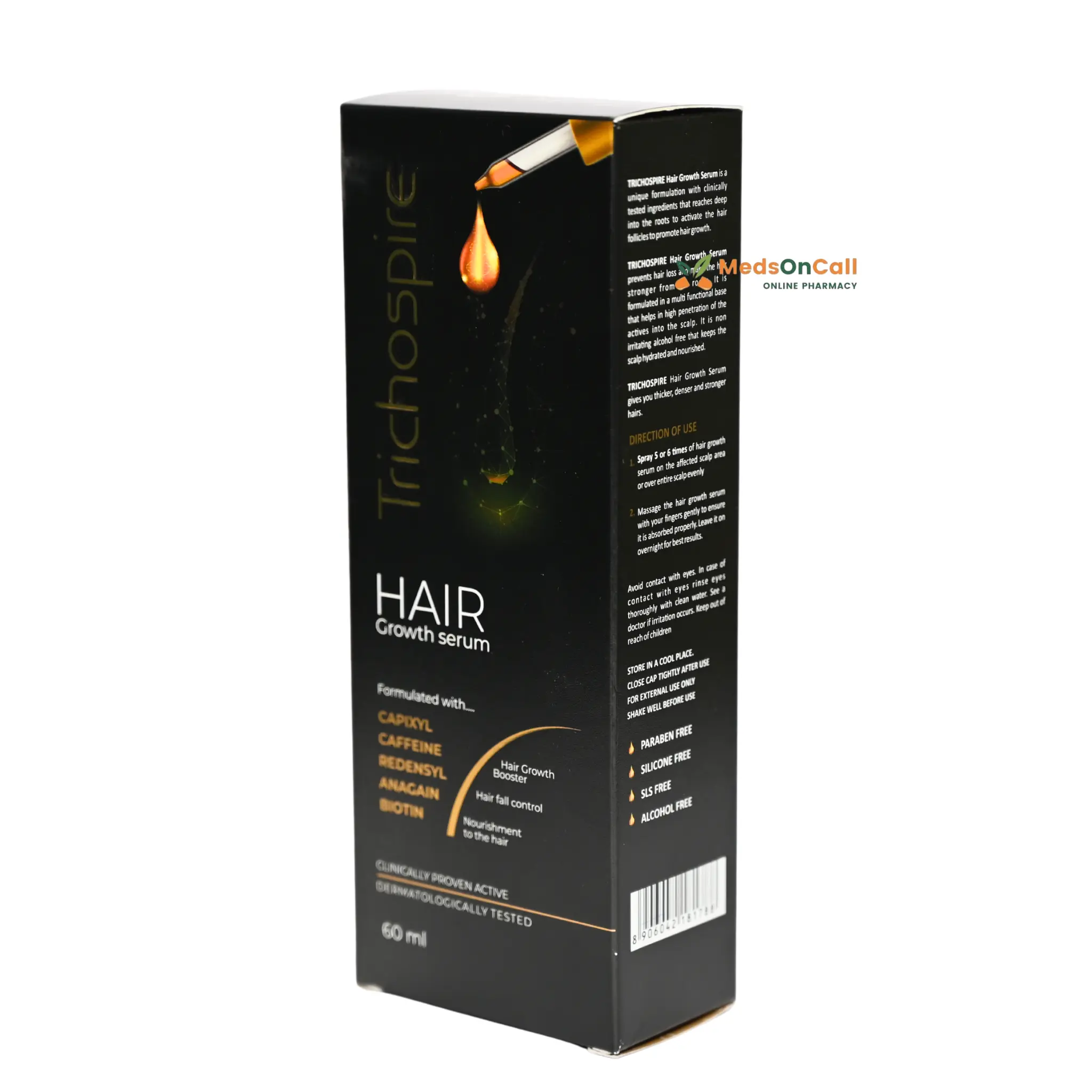 Trichospire Hair Growth Serum is a lightweight and non greasy scalp treatment formulated to promote hair growth reduce hair fall and strengthen hair from the roots It contains clinically backed ingredients such as Redensyl Capixyl Anagain Caffeine and Biotin that work together to stimulate hair follicles improve density and boost scalp health This dermatologically recommended serum is suitable for all hair types and is free from parabens silicones sulfates and alcohol